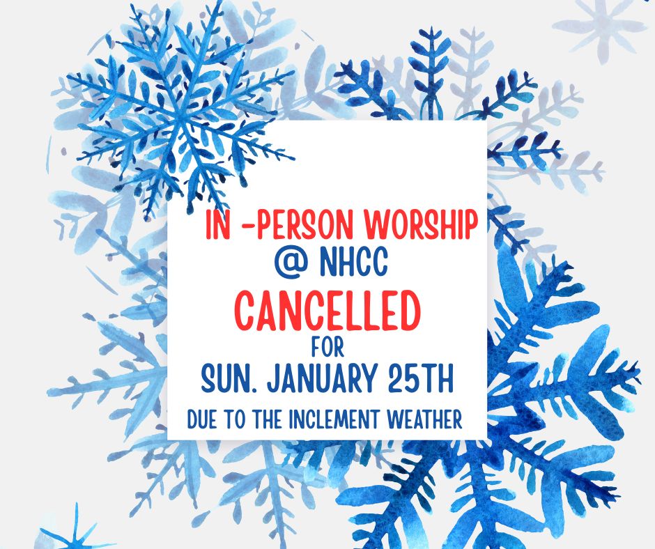 Due to the incoming inclement weather, in-person worship at New Horizons Christian Church on Sunday, January 25th will be cancelled.